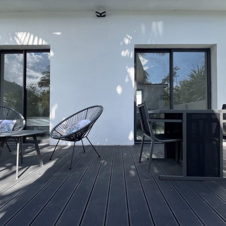 Séjour avec table et chaises.